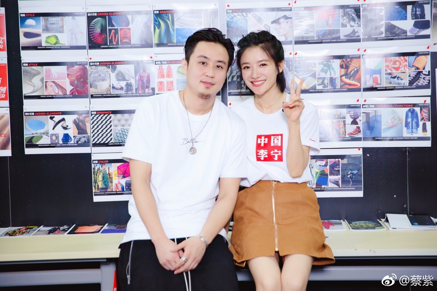 蔡紫与工作人员交流互动,姿态放松,眼神中流露出真诚与亲和力